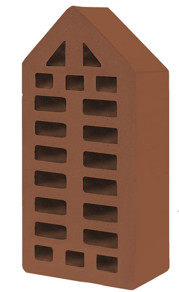 Фасонным называют кирпич с изменённой тычковой (узкой короткой) стороной. Если у стандартного продукта она прямая, то фасонные предполагает варианты: тычок может быть угловые, полугруглым, П-образным, с одним срезанным углом. С помощью такого кирпича можно создать невероятные узоры на фасаде, и даже лишить дом внешних углов! Смотрятся такие дома очень интересно!